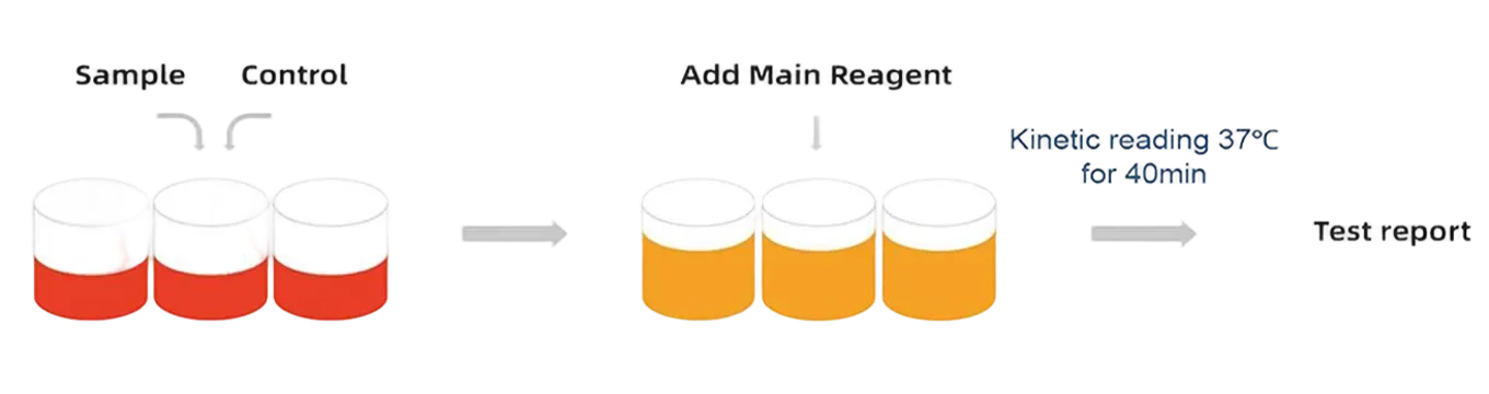 The pre-treated samples are added into the Main Reagent which contains Factor C and Factor B.