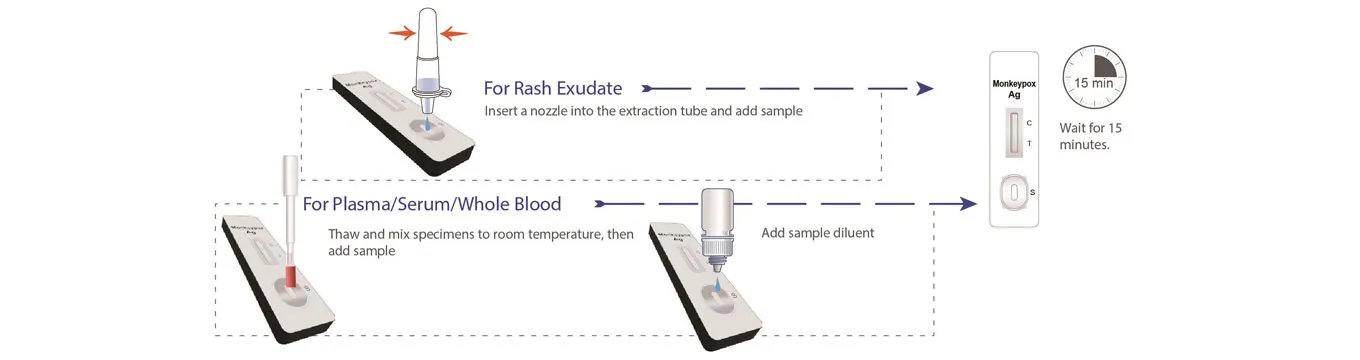 The product is a lateral flow chromatographic immunoassay for the qualitative detection of the monkeypox virus antigen in human samples.