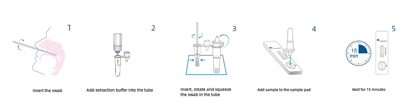 The processed swab sample is applied to the test strip.